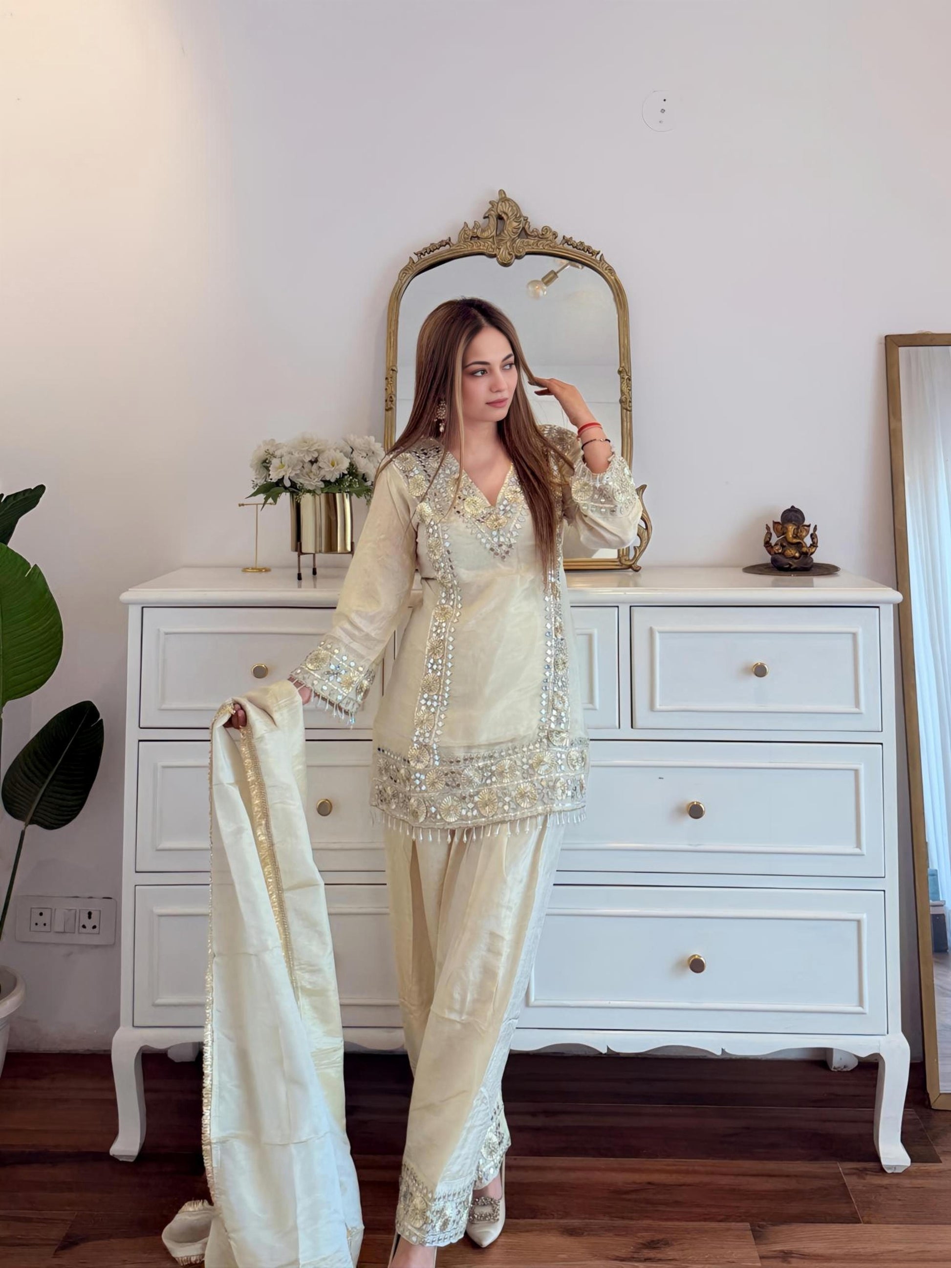 Ivory Mirror & Sequin Embellished Suit Set with Dupatta ✨